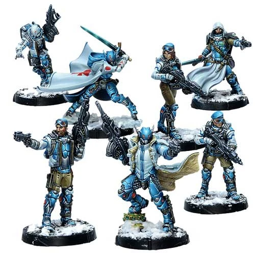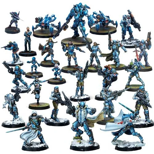 This box includes the 26 miniatures that make up the entire CodeOne range of the PanOceania army, as well as the CodeOne rules booklet. This box is the perfect way to get the entire collection of the great hyperpower of the Human Sphere.