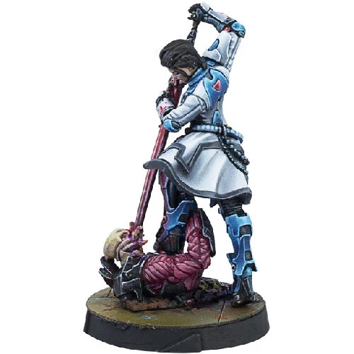 A lethal and resilient contender in close combat, there is no enemy who can resist her great sword. If you want to finish off your opponent with a clean stroke, don’t hesitate to include her on your PanOceania or O-12 army.