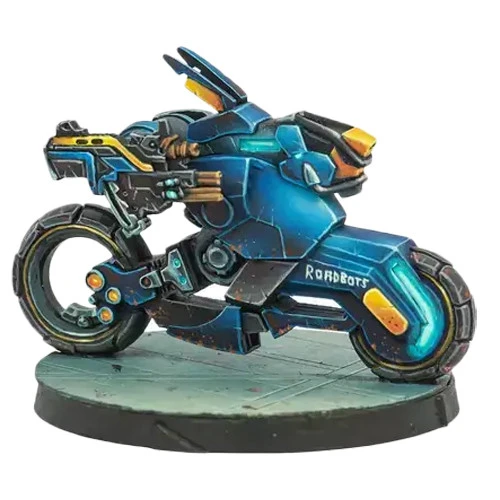 Whether in their fast high mobility form or in their lethal combat form, working solo or teamed up with their loyal SideBots, the RoadBots embody the law on the roads of frontier territories. A law with a metallic body and armed up to its cyber eyeballs.