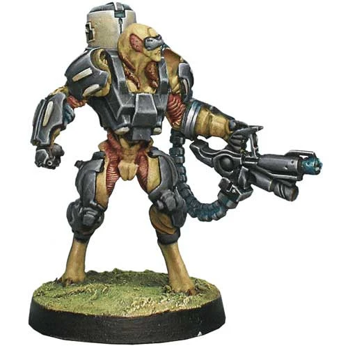 Tohaa High Command, true to its doctrine, quickly recognized the military potential of the Exaltation project for the Chaksa race. As soon as the first tests were successful, the Trident involved itself in the project to ensure a measure of control over its results. Therefore, during the formation process of exalted Chaksa, they are inculcated with the precepts and ideals of the Trident. Through this indoctrination the High Command ensures a constant number of Chaksa recruits that, following their formation period, increase the numbers of Tohaa military forces. Chaksa make excellent light operatives. Their resistance and exceptional physical qualities make them all-terrain troops, able to march without pause, carrying localization biodevices and all the supplies and equipment of a combat force under the worst environmental conditions without complaint. However, it is in the midst of combat where Chaksa Auxiliaries stand out for their bravery and their unbreakable loyalty to the Tohaa cause, fighting to their last breath for those who exalted them to sentience and allowed them win their place on the galactic map.