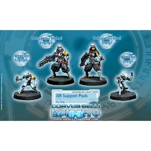 A new kind of compilation box specially designed by CB for new players. Thinking ahead to the ITS missions in which they are very useful, the Support Packs comprise Doctors, Engineers and their G: Servant Remotes. The JSA (Japanese Sectorial Army) version of this comes with two Tokusetsus, which have seen their AVA revised for the 3rd Edition, and their reliable YaoZao Remotes.